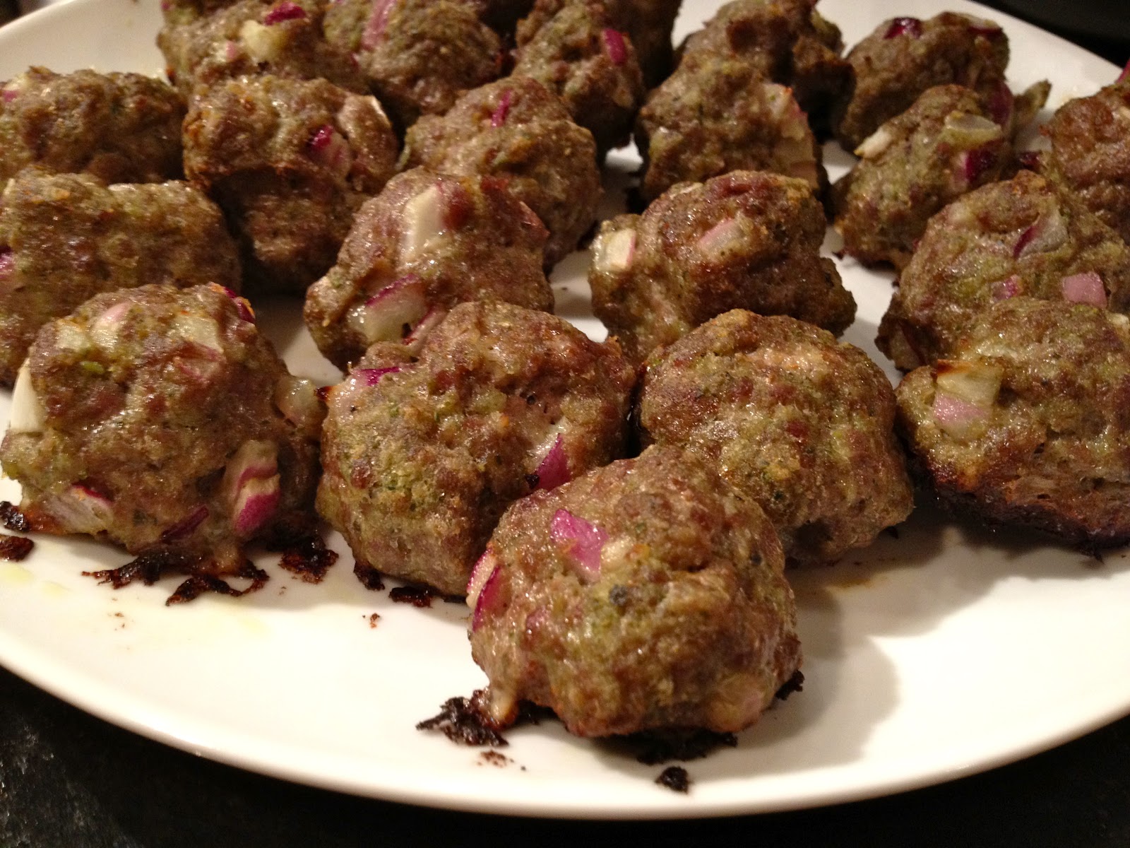 Recipe: Preheat your oven to 375 degrees. In a large bowl combine the beef, egg, bread crumbs, pesto, and onion. Add a generous sprinkle of each of the spices and mix until well combined.